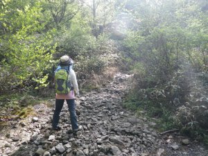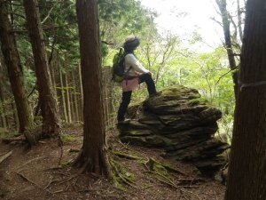 | 足元に巨石 | かなり降るところもある | 樹林帯に入る |