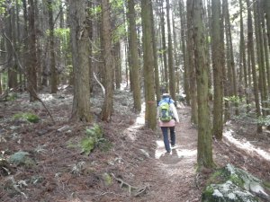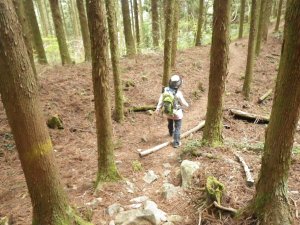 | 杉林を歩く | 変わった石 | 植林帯が続く |