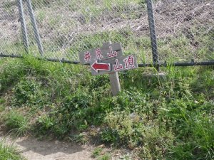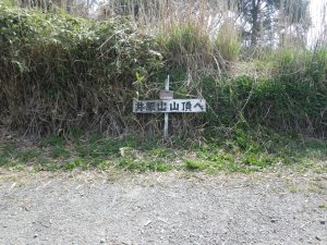 | 登りつめると未舗装の林道に出る | 送電線の鉄塔がある | 鉄塔の下に標識が |