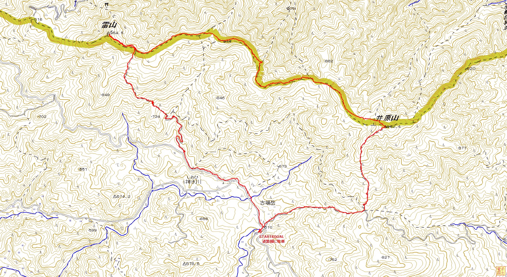 井原山〜雷山登山コース(GPSによる歩行軌跡)