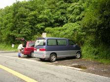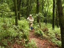 2006年7月2日 天気曇り 雨模様が続き、今日も予報は雨、でもやっぱり日頃の行いがよいので雨どころか時々陽があたる暑い日になりました。 今日は、オオキツネノカミソリの開花にあわせた井原山バスハイクの計画のため、下見に来ることになりました。足立山のYさん、Yさんの奥さん、Hさん、Fさんの5名での山行きです。 コースは野河内から山頂を目指し、三瀬峠に下る予定でしたが、それだと下見では車が2台必要となります。それではもったいない(日本人のいいとこですね)ので2班に分かれ山頂でおち合うことにしました。私とFさんは三瀬峠から山頂を目指し、Yさん3人は野河内より山頂を目指すことにしました。もし、行き違いで落ち合うことが出来ないことを考え、念のため車のスペアーキーを渡すことにしました。これが後で大正解だったのです。 <アクセス> 福岡都市高速の場合、堤I.C(開通すれば野芥I.Cが良い)より福大を過ぎ野芥交差点を左折、263号線を三瀬方面へ向う <コース> 三瀬峠から山頂を目指し、下山は水無登山口を経由して野河内登山口へ行くコースの紹介をします。「楽しみは後で」という感じのコースです。本番は逆のコースを行きます。 三瀬峠には車が6〜7台程度止められそうですがあくまでも駐車場ではありません。駐車スペースのところに「井原山4.6km」の標識があります。ここが登山口です。林の中を入りすぐに舗装された林道にでます。出たところに小さな標識があります。井原山はこの林道を右手に歩きます。すぐに携帯電話会社の柵をした土地があり右手に小さな木柱の標識があります。ここから林の中を行きます。10分程度なだらかな道を行くと急に開け鉄塔のところへ出ます西南側が開け、井原山までの従走路が見えます。アップダウンが続き登山口から約80分で「新村別れ」です。休憩して急登を喘ぎ、緩やかな道を行き、新村別れから約30分で林を抜け開けた道となり、水無との分岐「野河内別れ」に着きます。10分程度さわやかな稜線歩きをすると山頂です。 次ページへ |