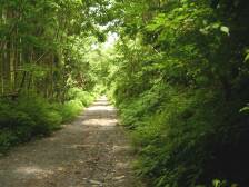 | 林道を行く | 竹林までくればもうすぐ | 渓谷への標識 |