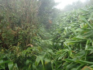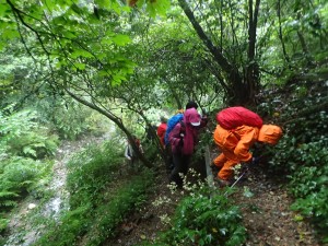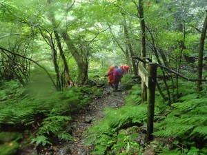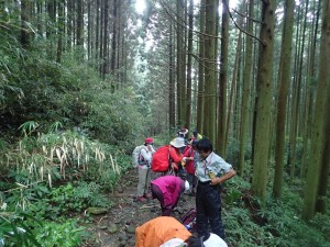 | ルンルン気分でスタート | ヤブミョウガの花(食用にならない) | 雨具を着る |