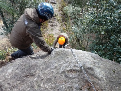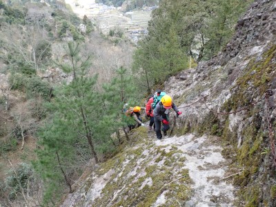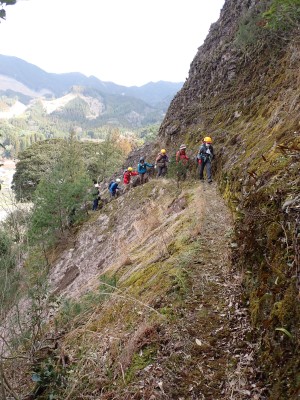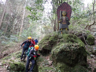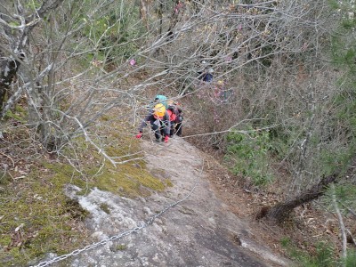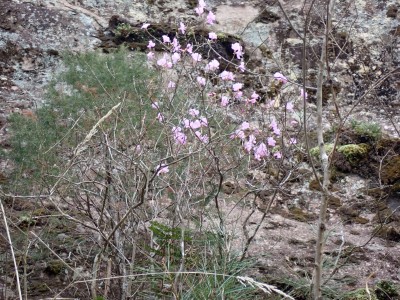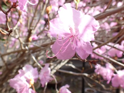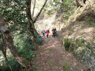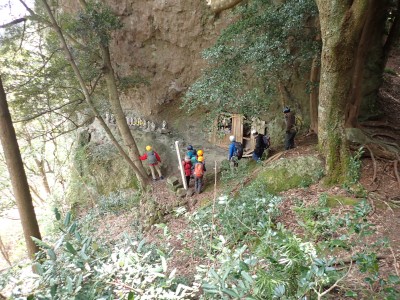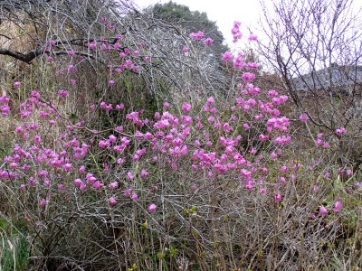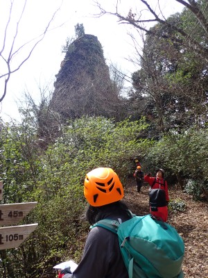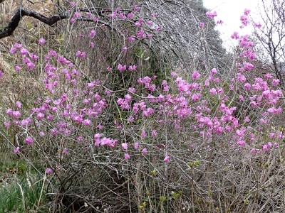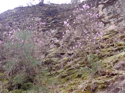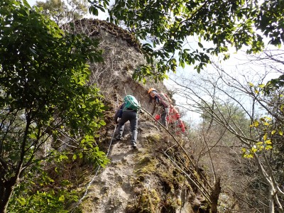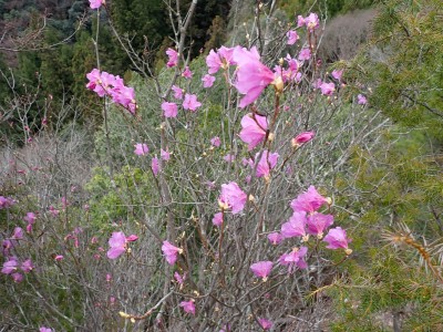 「春がやってきた!」と言うことで朝鮮半島の金剛山、対馬と岩屋公園にしかないと言われている珍しい玄海ツツジの花をメンバーにも見てもらいたいと思い臨時山行を企画した。ツツジだけをみるなら山行にはならないが、岩屋公園は岩屋神社があり奇岩群に窟などもあって一回りすると結構歩きごたえもある。露岩帯を歩き、ちょっとスリリングな場所もあってとて面白いので「山行」と言える。北九州市小倉南区から英彦山方面へ、そして小石原を抜け東峰村へと移動距離は約70km、道は度々の豪雨被害で片側通行の場所が何度もあるため時間はそれなりにかかり約2時間かけて岩屋神社前に着いた。必ず彼岸の中日には開花すると言われている玄海ツツジ、実に素直に咲いていてくれた(ほっ)、賑やかな撮影会はしばらく続いていよいよ奇岩巡り。見所はたくさんあり、露岩帯を思う存分楽しみ無事スタート地点に戻る。青空が広がる天気だが、風が強く、肌寒い。ランチする場所を探して隣接するキャンプ場に行くと何と誰もいない。日当たりも良く座る場所もあったのでここでランチタイム。集合写真を撮って駐車場に戻り、帰路に「道の駅小石原」、そしてM氏お勧めの「とりモモ焼き」。持ち帰る予定であったが、ここで食べた方が美味しいとお店の方から言われ、全員がここで食べた。ランチを終えたばかりなのに・・・・「ごちそうさま」。無事に帰宅したらすぐにビールに飛びついたのは言うまでも無い。