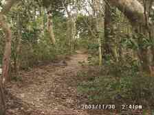 2003/11/30 天気 曇り 2週間前から持病の「大腸憩室炎」が再発し、体調が思わしくなく、体重も5Kgも減ってしまい、山歩きができるかどうか不安でしたが、せっかくの休日に家にいるとますますストレスが溜まり体によくないと考え、2〜3時間程度の道程であればと思い、宗像の「城山」を歩くことにしました。ところが天気予報では曇りだったのですが、朝は雨が残り、迷っているうちにお昼になり、とりあえず出かけようということで登山口に着いたのは、午後2時を過ぎていました。 家内は、と言うと、これまた体調が思わしくなく(女性特有の病気)、今日は、単独でのトレッキングとなってしまいました。でも、「たまにはいいっか!!」 「城山」は、かなり整備されていて登山者も多いと聞いていたので楽しみにでかけました。 |
