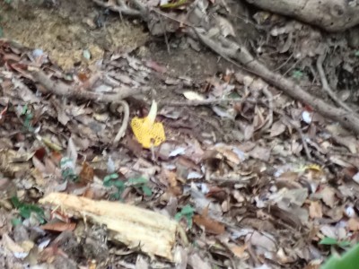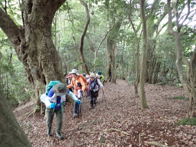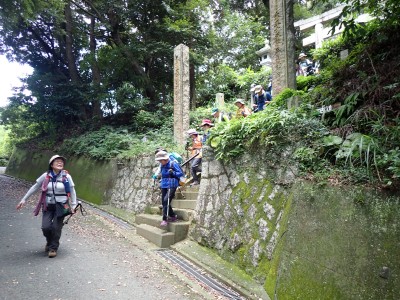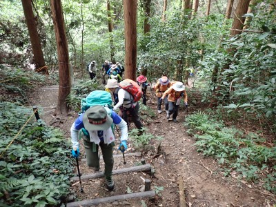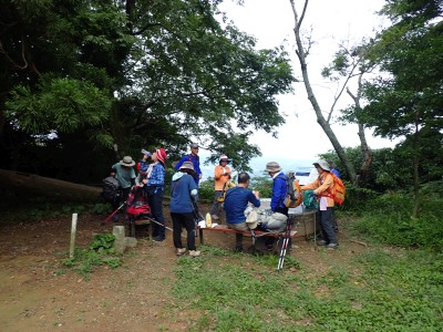 連日33℃を超える猛暑。湿度も高く熱中症になるには最適な状態である。クーラ(エアコン)がないと部屋の中では生きて行けないと言われる暑さ。そんな中、400mにも満たない山に登ろうと言うのは高齢者にとってはある意味命がけかもしれない。JR教育大前駅に集まったメンバーは17名。改札口から歩き始めるともう汗がにじみ出てくる。登山口まで来るとやや涼しさを感じる。目的のキヌガサダケを探しながらゆっくりと登る。すれ違う登山者に聞くと「1本だけ○○○にあったよ。ま、ないよりましだろう」と笑顔で話す。そしてその場所に着くと、お話の通り1本のウスキヌガサダケがあったが、レース状のスカートは既に萎みかけていて「キノコの女王様」の品格ある輝きはなく、床に伏せた老人のように見える。それでも初めて目にするメンバーはしばらく写真を撮ったりしていた。それを見て「ないよりまし」とつぶやく自分がいた。山頂に着くとしばらく休憩タイム。蒸し暑さは予想以上に疲れを早めるようだ。ここから金山を目指す。きれいな稜線歩きはすぐに終わり、急降下して石切峠、一息ついて再び登り返して金山南岳。城山頂上までは計画通りのタイムだったが、ここにきて20分も遅れている。このペースだとここから北岳往復するとさらに20分遅れるだろう。遅れるのは構わないが熱中症が心配である。そこでH会長のアドバイスもあり、ここで引き返すことにした。ランチを終え集合写真を撮って石峠へ戻る。峠から赤間方面へと下山する。森を抜けると陽射しで焼けるような暑さ。駅までが結構遠い。途中で断念して正解だった。『さあ、汗をかいた後はビールがうまいぞ!』と元気を取り戻し列車に乗り込む。17名の内、13名が2次会に参加してくれた。帰宅したのは何と19時を過ぎていた。一体何時間飲んでいたのだろうか?思い出せないのは歳のせいか、それとも酔っていたのか・・・・・・今日も自然に山に仲間に感謝!!!