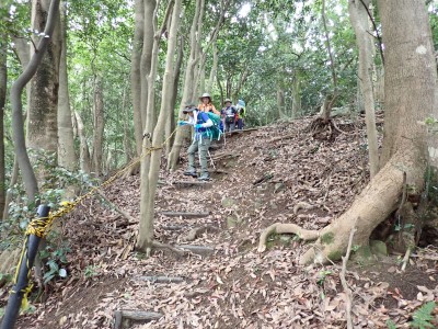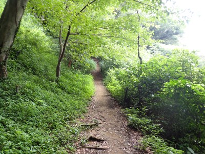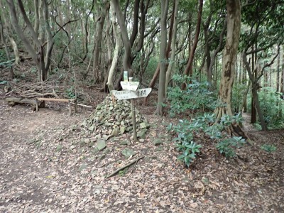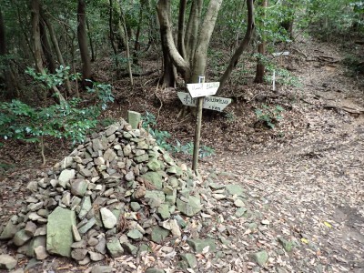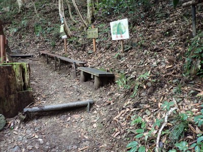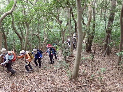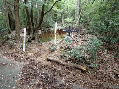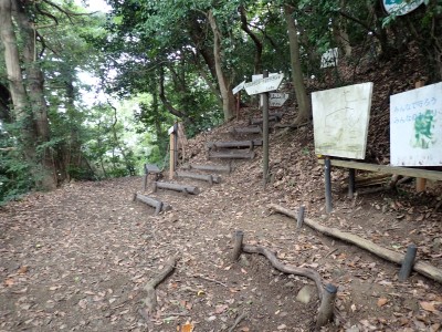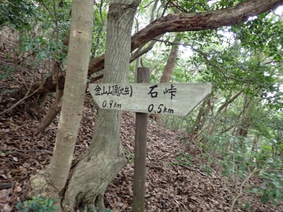 JR教育大前-(20分)-登山口-(30分)-三郎丸分岐-(20分)-山頂-(35分)-石峠-(35分)-金山南岳-(22分)-石峠-(30分)-尾降神社-(20分)-JR教育大前駅 ※休憩時間含まず。全行程で約5.5時間 |