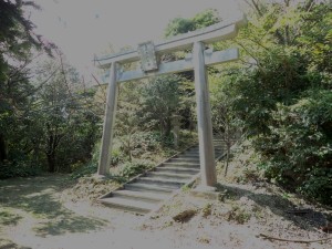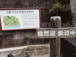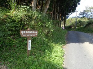 | 大鳥居・・・第一鳥居(9:52) | 鳥居をくぐると自然歩道の標識がある | 水道局の配水池がある |