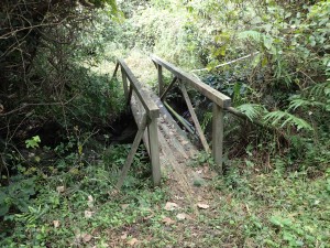 | 山頂まで2.5KMとある | 急に狭くなる | 木の橋が |