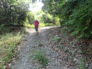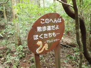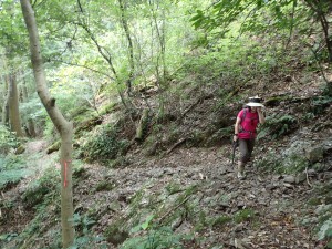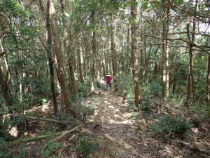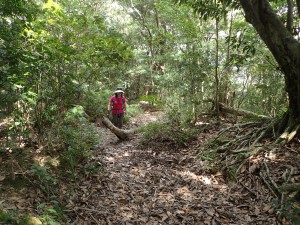 | 自然林の緩やかな上りが続く | 山頂へ1km | 結構長い |