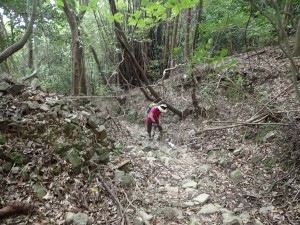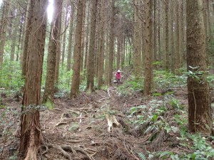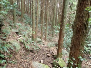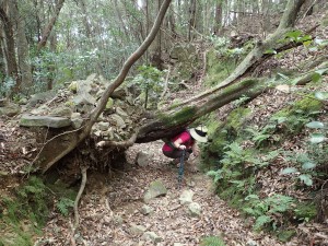 | 鞍部のようだがここより尾根歩きになる(10:43) | 倒木が多い | 巨樹も多い |