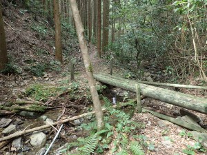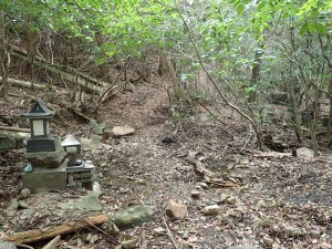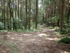 | 林道?を横断 | 水神さま | 植林帯の道になる |