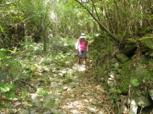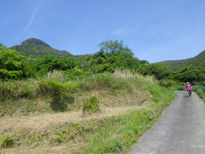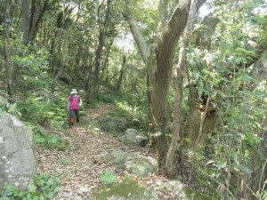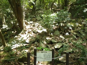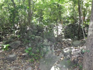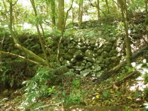 | 住居跡か | なだらかな道を歩く | 石垣が結構続く |