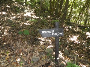 | 遺跡の前で | 積石塚(この上に登山道) | え!山頂まで5km? |