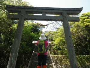 | 鳥居をくぐる | お参りをして出発 | 道票が並ぶ |