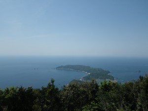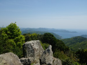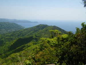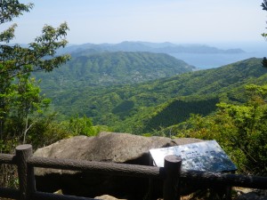 | 一等三角点のある山頂 | ここを通り抜けると展望が開ける | 野間半島 |