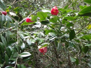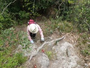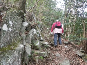 | ツバキの花が多い | 露岩を登る | 岩峰が現れる |