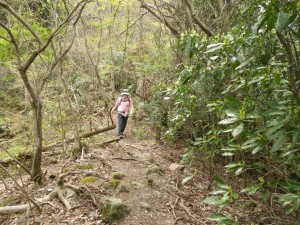 | ミツバツツジが少しだけ咲いていた | 巨木が多くなる | 勾配はかなりきつい |