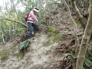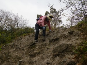 | 露岩が現れ始める | かなり急斜面 | よく見るとまな板のようだ |