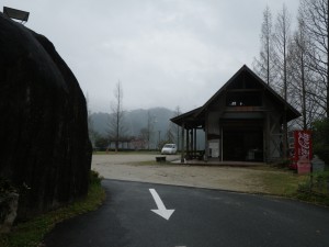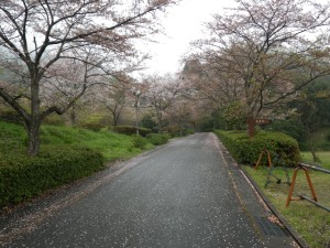 | 巨石パーク入口 | 車道には桜の花びらが | 管理棟 |