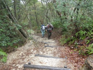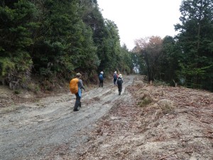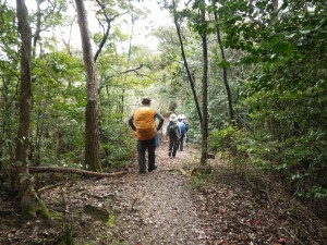| たもと石へと向かう | 自然林の中を軽快に歩く | 工事中の林道へ出て再び登山道へ |