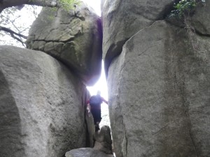 | 巨石群登山道入り口 | 階段を歩く | 巨石が現れる |