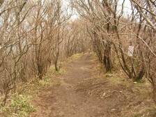| 猟師岩山 | 開けた道となる | ブナ林の先に金山 |