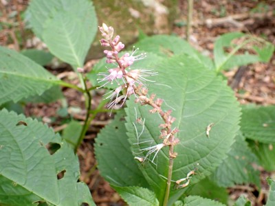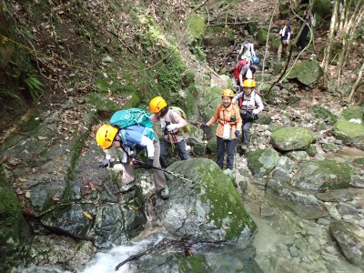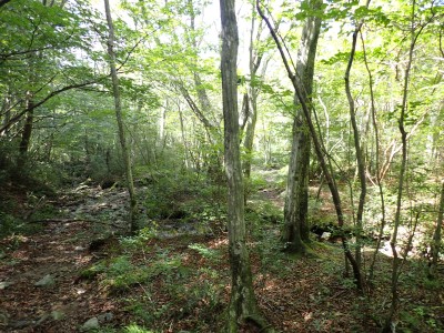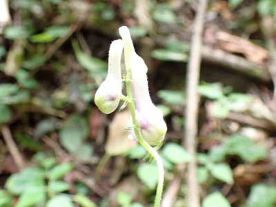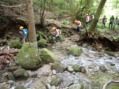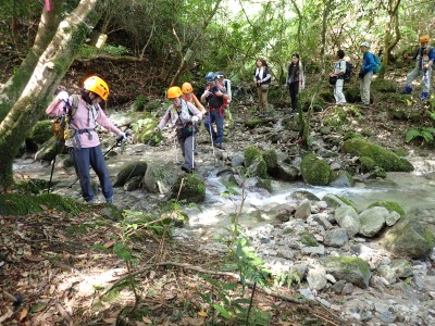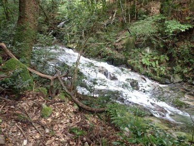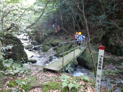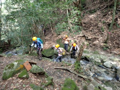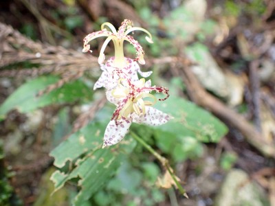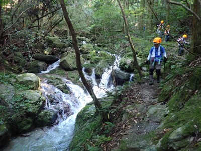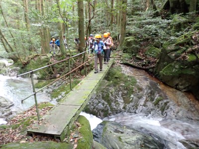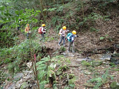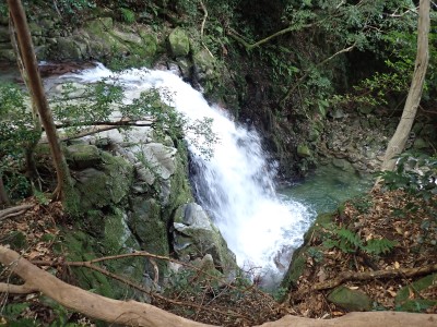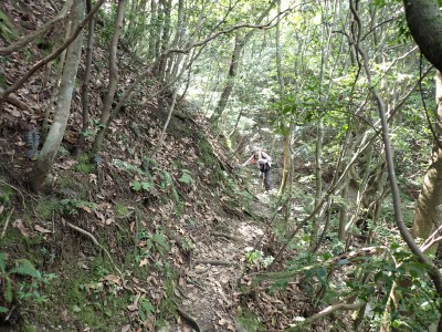 アタック山の会9月例会登山は、一昨年にY氏と歩いた脊振山系の金山を年間計画に入れていた。金山は坊主ケ滝側からや椎原からのルートが人気と思われる。今回のルートは少々マイナーかもしれないが、沢沿いを歩きアケボノシュスランと言う花に初顔合わせできることを楽しみに出発した。高速を降りて263号線からかなり狭い道を走り、花乱の滝へ立ち寄る。なかなか見ごたえのある滝だ。再び狭い道を抜け広い林道に出ると正面が登山口となる。車を何とか停め、ここで待ち合わせたHさんと合流した。携帯はここではつながらない。登山準備して出発、メンバーの植物博士U氏は、先頭を歩いていた私が気づかなかった小さな花「アケボノシュスラン」を早くも見つけてくれた。予想していたよりもとにかく小さい。カメラの焦点が合わなく、スマホで撮る。なぜかスマホの方がきれいに撮れる。沢を何度も渡渉し、時には沢に沿って歩くことも。滑らないように慎重に歩くので当然ながら時間はかかる。アゴ坂分岐から直登ルートを行く。こちらは支流からさらに支流へと谷を詰める。最後はもちろん急登。尾根に出るとそこは坊主ケ滝への分岐点、そこから一登りで山頂に飛び出る。狭い山頂は陽射しが強く、暑い。狭い稜線は背振山まで続く縦走路だが、その道沿いの日陰でランチタイムを過ごす。相変わらず賑やかなひとときだ。下山は縦走路を少し背振側へ進むと山中地蔵への分岐標識があるのでそこから佐賀県側へと降る。山中地蔵と三ツ瀬峠の分岐は、三ツ瀬峠へ。沼地があってとてもきれいな樹林帯がしばらく続く。とても気持ちの良いコースだ。アゴ坂峠へと降りきると今度は谷間の急斜面からヤセ尾根を急降下し、沢に出ると今朝歩いてきた分岐点に出る。ここからは往路を戻る。なかなか変化のあるルートである。無事登山口に着くとメンバーから「きつかったけど面白かった」と耳にする。予定より大幅に時間がかかったが全員怪我も無く無事下山できた。頼もしい仲間たちとの山行で今日も楽しい山行であった。今日も山に自然に仲間に感謝!!