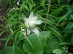 | 急斜面を降る | オオバギボウシ(大葉擬宝珠) | 蕾が橋の欄干の擬宝珠と似ている |