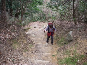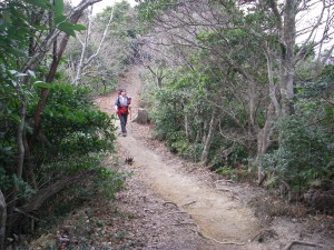 2011年1月23日(日) 天気 晴れのち曇り 午前中は糸島市の可也山に、そして午後からは前原市の叶岳から高祖山までの縦走と言うことで移動時にうどん屋さんで腹ごしらえをした私たちは今宿野外活動センターの駐車場にちょうど正午に着いた。叶岳(かのうだけ)は叶嶽神社があり、高祖山(たかすやま)は怡土城址(いとじょうあと)がある。叶岳と高祖山の間に高地山(こうちやま)があり3つの山の中で一番高い。このコースは低山ではあるが気持ちの良い縦走ができ、また歴史も学べる山でもある。 <コース詳細> 野外活動センターの駐車場に車を停めて一旦車道を戻ります。8分程度で鳥居がある叶嶽登山口が左に見えてきます。鳥居が続く参道をしばらく歩くと左に遥拝所があるので立ち寄ります。展望所もあります。一旦戻って参道を再び歩きます。またすぐに右手に展望所があります。勾配はきつくなってきて9合目で不動岩の案内があるので立ち寄ります。一息ついて再び参道に戻り左にベンチのある展望所を見て階段を上がると叶嶽神社に出ます。お参りして裏手に回ると縦走路が延びています。山頂標識を見て次は高地山を目指します。アップダウンはありますがさほど急なところはなく良く整備された道を気持ちよく歩きます。遠くに高地山らしいピークが見えるのですが、なかなか山頂に出ません。なだらかな道を歩いているとベンチでご夫婦がランチタイムをされていて通り過ぎて道の脇に標識があるので見ると三角点がある高地山頂上でした。展望も広場もありません。写真だけ撮って再び歩き始めると5分程度でベンチが見えてきます。飯盛山への分岐です。ここでコーヒーブレイクとしました。登山者は少しこの辺りからすれ違うようになりました。道は下りとなります。左に入り込む道(下り)がありますが、迷わず真っ直ぐに進みます。鉄塔を右に見て下ノ城址1.7kmの道標を見てやや上ると林道(非舗装)に飛び出ます。道標の下ノ城址の方へ林道を横断します。尾根歩きの上り道となり志賀見台コースの分岐を過ぎ、自然観察路への分岐を2つ見て防空壕を見ると山頂も近くです。「かねつき山経由上ノ原」との分岐から急斜面を上がると高祖山頂上です。さすが城址だけあって広い頂上です。また、高祖城の説明板があります。先ほどの登った可也山のきれいな山容が見えます。下山は最初の分岐(鉢伏山観音コース)まで戻り、分岐より左の谷間を降ります。こちらは整備されていなく自然を味わえます。岩を滑らないように慎重に降ってゆきます。いつのまにか杉林となりシダも多くなると鉢伏山観音に出ます。ここからは平坦な雑木林の道となります。自然観察路と合流して開けてくると足元に道標で右に野外活動センターへの分岐があります。真っ直ぐ進むと上ノ原ですので見落とさないようにします。道は平坦で広い道ですぐに野外活動センターの建物が目の前に見えてきます。左には茶畑があります。舗装道に出ると左に進み、センターの出入り口を出て左に行くとスタート地点の駐車場です。次ページへ |