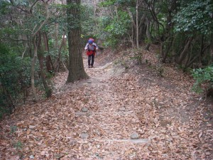 | 気持ちの良い縦走路 | 高地山が見えてきた | 落ち葉の絨毯を歩く |