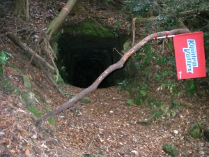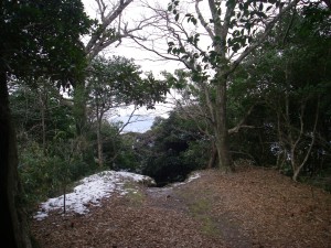 | 分岐 通り過ぎるが、下山はここまで戻る | 雪が残っていた | 防空壕 |