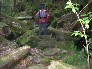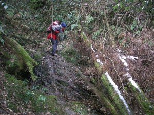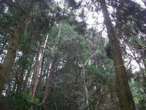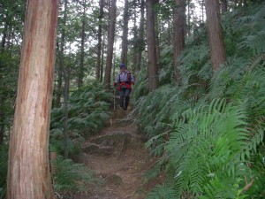 | 谷間を下る | 桧林から杉林へ | シダも多くなる |