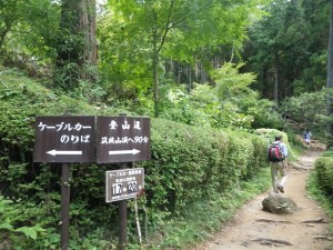 | 神社左手に登山口(8:58) | ケーブルカーとの分岐(9:00) | キバナアキギリ |