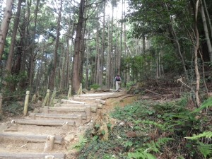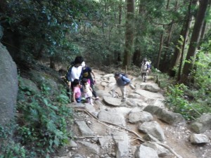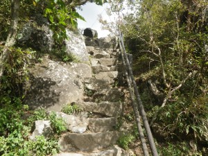 | どこまでも続きそうな階段 | 階段が終わった | ケーブルカー山頂駅(10:08) |