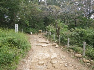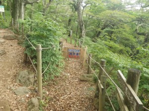 | 男体山頂1.4kmになった(9:27) | ケーブルカーが見える中ノ茶屋跡(9:30) | 急登する |