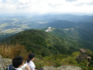 | 女体山を望む | 景色は最高 | 岩の上に立つ |