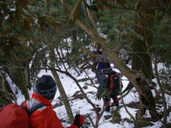 | 912mピークの巨木より薬師林道へ降る | シャクナゲが多い | 大きな木がたくさんある |