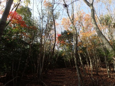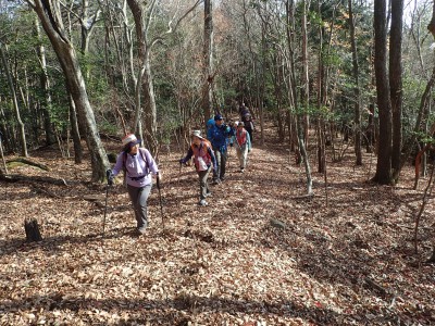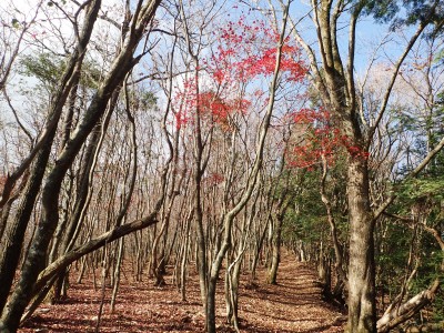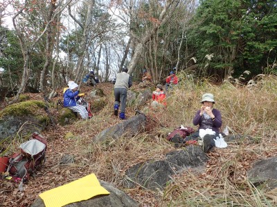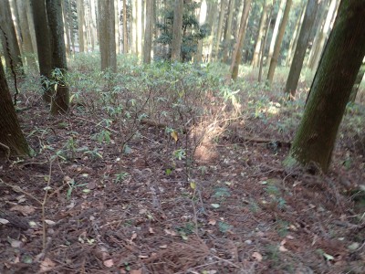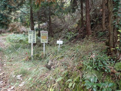 気持ちも腹も一杯になって下山開始。稜線をしばらく歩くと城跡がある。目印がないので間違えやすい場所だ。