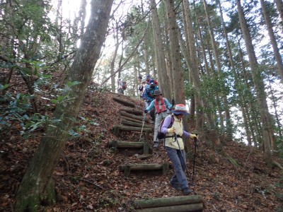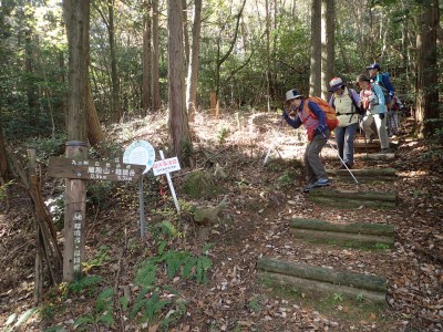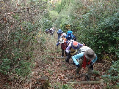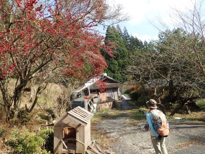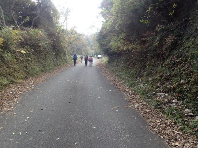 昨年見た、銀杏の葉はほとんど落ちていて実だけ付いている。檜と杉の植林帯を行くと雁股トンネルの手前に登山口標識がある。トンネルは少々気味が悪いが、勇気あるY氏は出口へと歩いて戻ってきた。幸い何事もなかったようだ。
