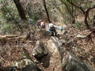 東峰から急斜面を降下して鎖場を登り返すと広場に出る。西峰頂上は、その先少し行ったところなので先に写真を撮る。それからちょっと早いがランチタイムだ。