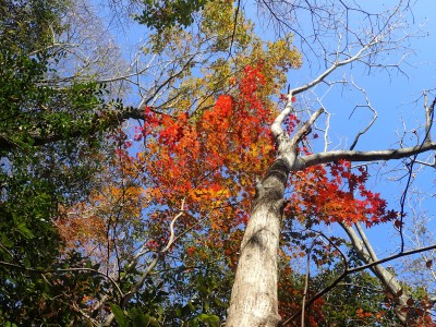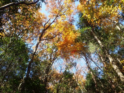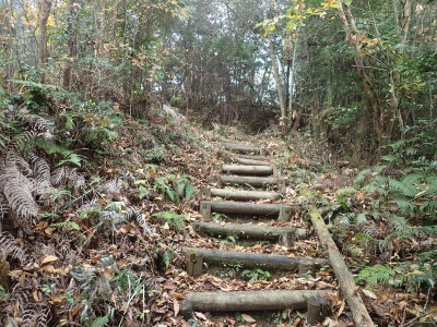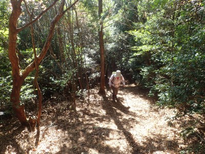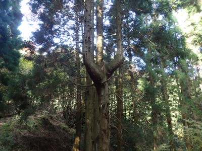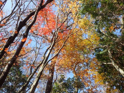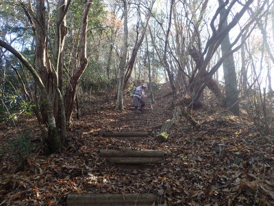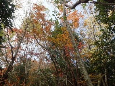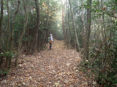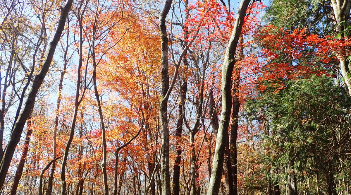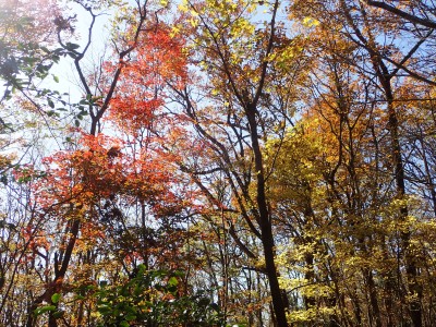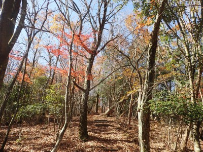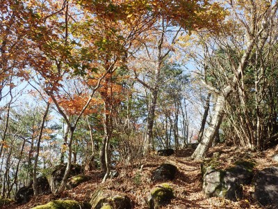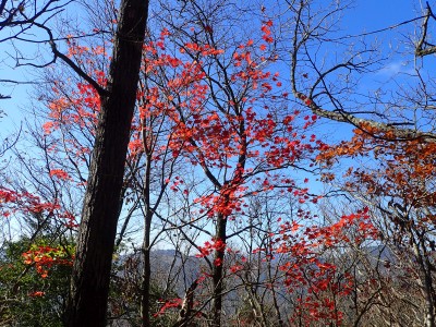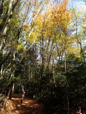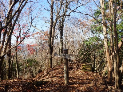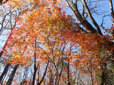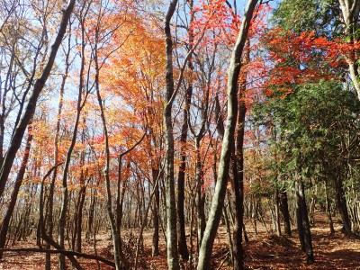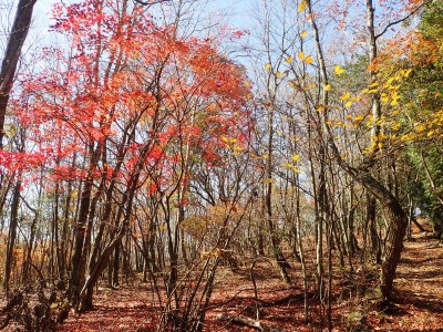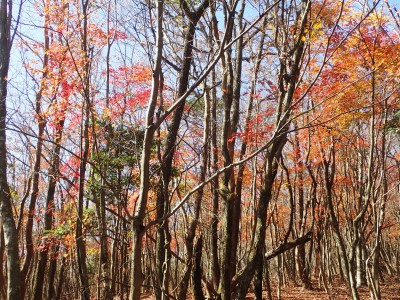 ところでその見せ場だが、まず、雁股峠から歩いて山頂のすぐ手前のなだらかな場所。そこはカエデが多く、とにかく紅葉が素晴らしい。冬枯れの時もきれいな樹林帯で素晴らしかった。そして西峰から急降下して平坦になってからの道も木漏れ日でとても心地よい。さらにもう一つ、登山者が少ないため静かな歩きができる。ただ、ちょっと残念なのは林道工事だ。何のための林道か知らないが工事している時は建設機械の音が、鳥の囀りや木々が揺れる音も打ち消してしまう。それもこれも人間の我儘だが・・・・