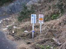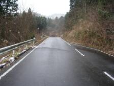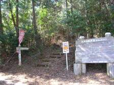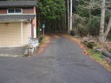 | 登山口(九州自然歩道と書かれた立札) | 栗林 | ここより右手に(このカーブを進むと雁股峠) |