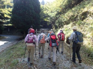 | 豊前坊を出発(8:40) | 車道を歩く | 鷹巣山 |