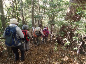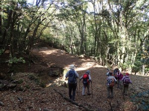 2015年10月25日(日) ■出発時間: 午前7時20分(小倉南区葛原) ■メンバー:男性3人、女性5人 アタック山の会の10月山行は、英彦山系の「苅又山」にした。元々鷹巣山と考えていたが、この時期登山者が多いと予想し、団体だと他の登山者に迷惑をかけてしまうので苅又山ならばひっそりと歩けるだろうと考えた。ただ、杉が多く、落葉樹が少ないので全山紅葉と言うような派手な紅葉はみることができない。それでも少しだけでも見れればと思い出発した。 下見では、豊前坊から北岳の肩を経て尾根沿いに歩いたが、かなりワイルドな場所もあるので団体では厳しいと判断し、無難に林道を歩くことにした。 今回はスリルや眺望を味わうことはできなかったが、のんびりとした秋らしい山行ではなかったのではないかと思う。 また、人気の赤村特産物センターで朝一番での買い物も楽しんでのおまけつきでもあった。 さらに個人的ではあるが、出発の準備をしている時にamiさんご夫妻に久しぶりにお会いし、また帰り際にMORIさんご夫妻にもお会いできた。 英彦山に来れば山友にお会いすることができるのでそれも楽しみである。 今日も自然に山に山友に感謝!! ■コースタイム 豊前坊−(10分)−薬師林道入口-(30分)-登山口-(57分)-912mピーク-(26分)-苅又山頂上-(96分)-登山口-(36分)-薬師林道出口(10分)-豊前坊※休憩時間は含みません。全行程で約4.5時間でした。 |
