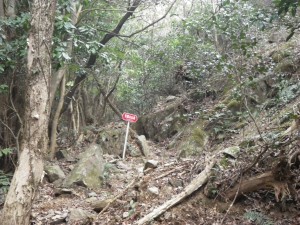 | 植林帯を進む | 道はなだらか | 稜線出て右方向 |