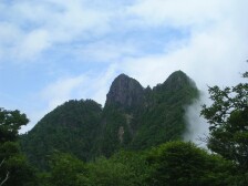 2007年6月23日 天気 曇り 我家は愛犬がいるため、なかなか泊まりで出かけることができないが、今回は長男が協力してくれて安心して?出かけることができそうだ。MORIさんが祖母傾山に連れて行ってくれるとのことでテントなど準備し午前5時30分に自宅を出発。雨模様なので心配だが、南に走るにつれ、天気は回復に向っているようだ。 <アクセス> 北九州方面からだと宇佐別府道の米良I.Cで降り、国道10号線を南に下る。犬飼を過ぎ、三重町の豊後総合庁舎前より国道326号線に入る。三国トンネルを過ぎ、越野を過ぎて水無平方面へ右折する。道なりに行き、黒仁田林道の標識より、右折する。 舗装道から砂利道となり、道幅も狭くなり、車高の低い車では底をつく。この林道は約10Kmも続く。時間がかかるので十分余裕を持った方が良い <コース詳細>黒仁田林道を車で約10Kmほど行き、適当なスペースに駐車し、さらに荒れた林道を歩きます。まっすぐ行くと登山道となり(途中で赤ペンキなどの印や小さな標識がある)植林帯から自然林となり、出発から約25分で水場に出ます。道は急になり鹿が出そうな自然林を進むと稜線が見えてきます。水場から約10分で広場のような九折越(つづらごえ)に出ます。ここは救助用のヘリポートとのことです。左(西)に行けば九折越小屋があるようです。右手(東)には傾山のかっこの良い山頂が見えます。今回はここで早めの昼食としました。九折越より東に進路をとり、なだらかな稜線歩きが続きます。クマザサが多く、もしかしてササユリなど咲いていないかなどと話しながら目の前に山頂が現れ、急登を喘ぎながら杉ケ越との分岐を見て思いもしなかったミヤマキリシマの花々に出会え驚き、周りは巨岩となり後傾に到着です。眺めを楽しみ、一旦下り、東から北西に回り込み駆け上がると傾山頂です。巨岩群と展望を楽しみ最高の気分です。帰路は往路をとります。帰りに九折越小屋を見て帰りました。 <参考コースタイム> 駐車SP−(25分)−水場−(10分)−九折越−(70分)後傾−(10分)−傾山山頂−(60分)−九折越−(10分)−水場−(20分)−駐車SP ※休憩時間は含んでいません。全行程で約5時間でした。 |