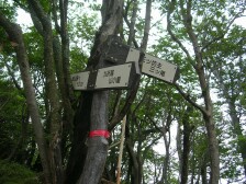 | 巨岩 | 冷水コースとの分岐 | 三尾コースへの分岐 |