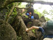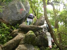 | 目の前が三ノ岳 | 右に行くとファミリーコース | 岩をはって上る |