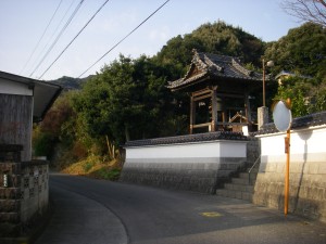 | 公民館の反対側に可也山 | 変な声で鳴くカササギがいた | お寺の横を通り過ぎる |